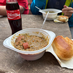 Der Tag begann mit einem Gottesdienst, den die Musikerinnen und Musiker mit schwungvollen Liedern begleiteten. Im Anschluss lud der Turnverein zu einer kleinen Stärkung ein – mit einer köstlichen, selbstgemachten Linsensuppe, die großen Anklang fand.